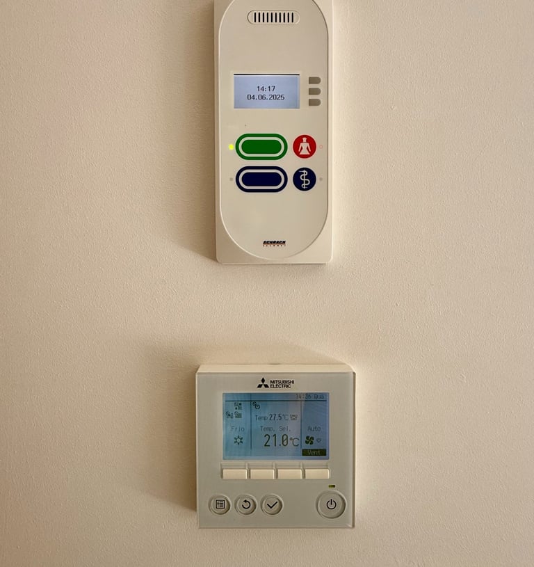 Perto de qualquer cama para podermos ajudar em qualquer momento