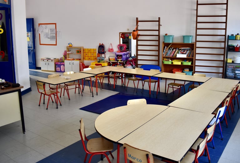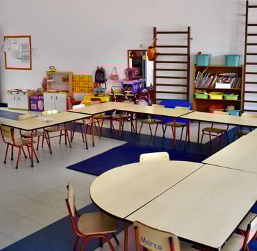 Todas as salas são espaços seguros, funcionais e estimulantes, equipadas com materiais adequados, divididas em árias que promovem a aprendizagem e o convívio entre crianças.